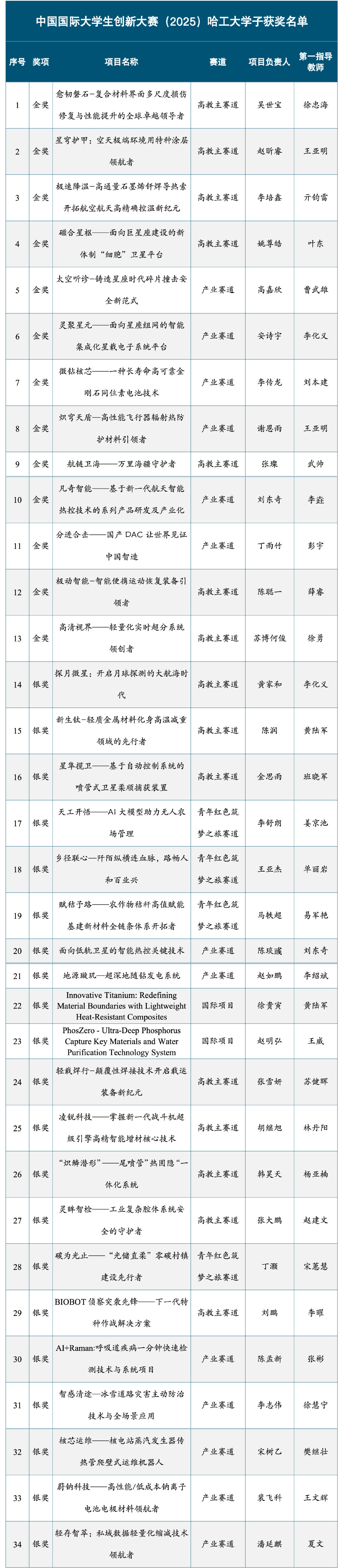 哈工大全媒体(阚思邈 本科生院 文/图) 10月12日至15日,中国国际大学生创新大赛(2025)总决赛在郑州大学举行。哈工大一校三区学子共斩获金奖13项、银奖21项,入围总决赛项目的总数与金奖获奖总数均创历史新高。其中,3个项目进入高教主赛道金奖排位赛,是我校进入排位赛项目数量最多一次,实现历史突破。