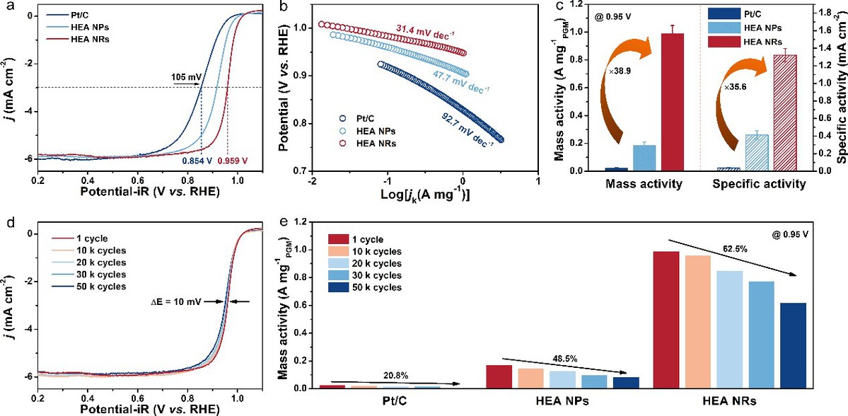 铂钯铁钴镍高熵合金纳米环的氧还原性能评估