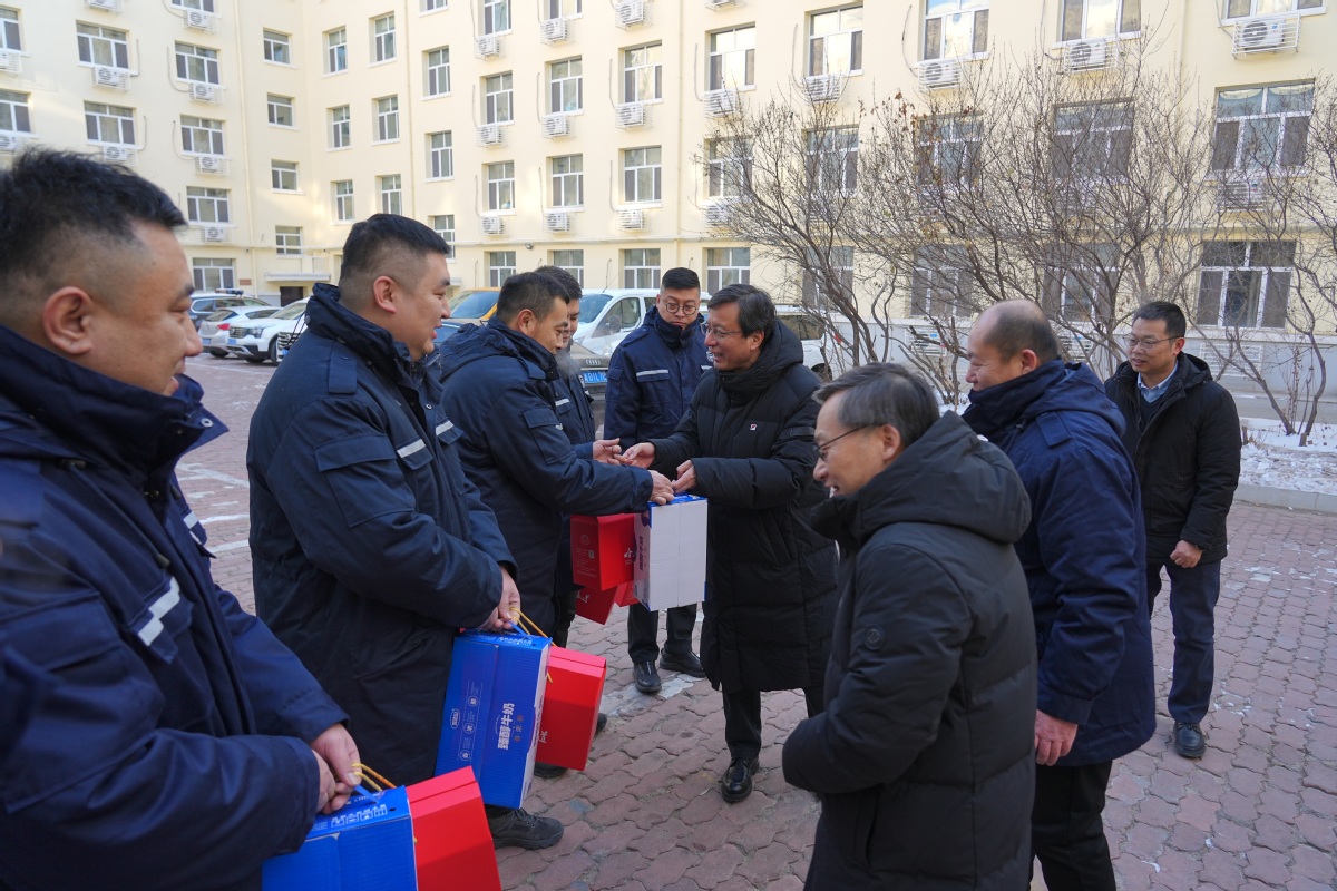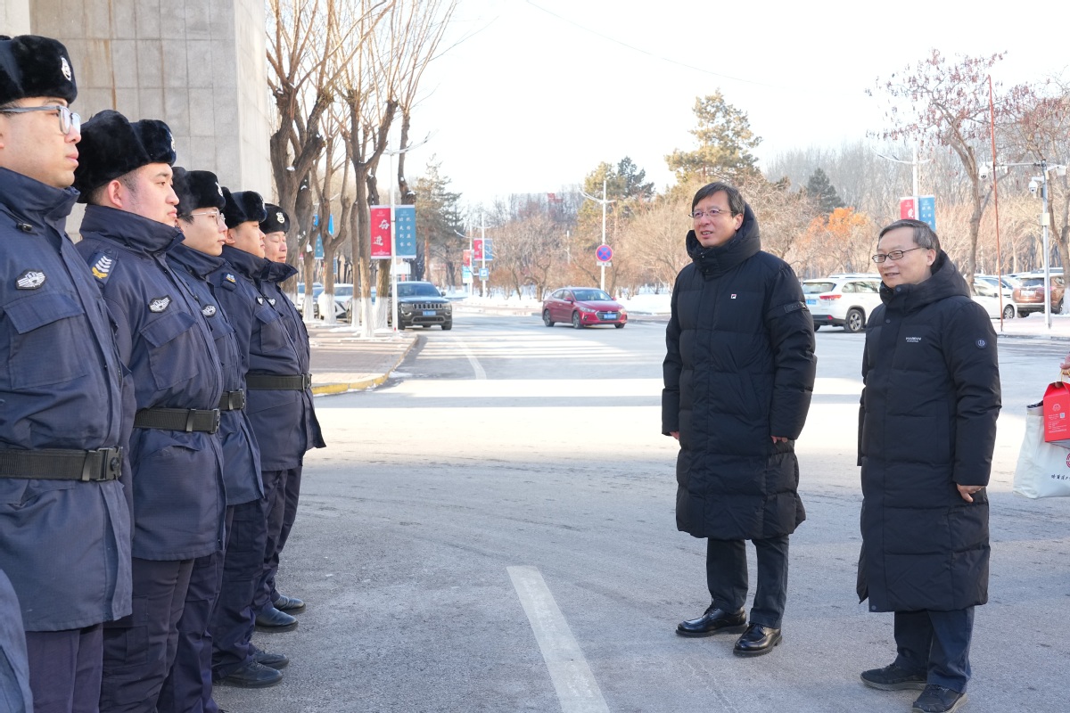 哈工大全媒体(阚思邈 张又元/文 辛然/图)新年将至,寒冬情暖。12月31日,校党委书记陈杰、校长韩杰才、常务副校长孙雪、副校长范峰走访慰问一线工作人员并送上慰问品,代表学校向参与校园管理建设、服务师生日常生活的一线工作人员表示感谢,并针对本年度为师生“办实事”落实情况进行实地调研。