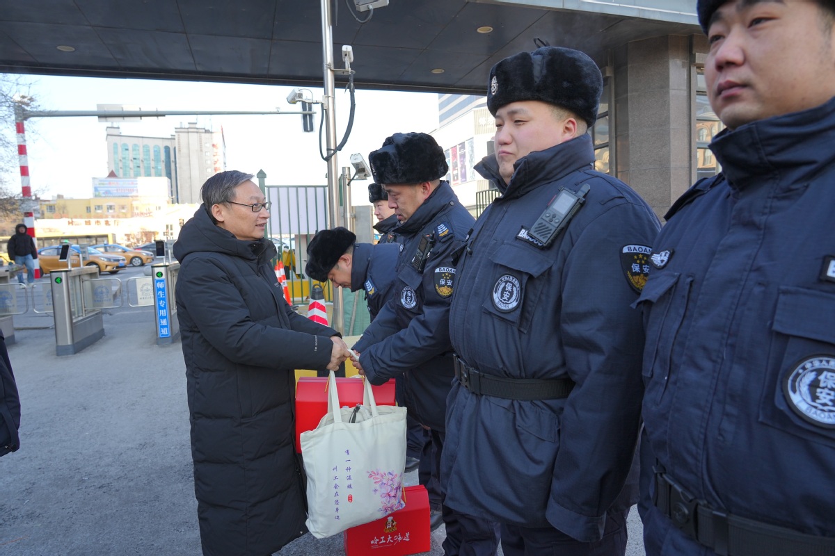 “冬季户外工作都做了哪些防寒保暖措施?”“平时生活中还有什么困难……?”校领导分别来到一校区、二校区和科学园,在西大直街正门门岗、校园环境部、保卫处、黄河路门岗、B08公寓、南苑餐厅等地走访慰问、送上温暖。每到一处,校领导都与一线在岗职工亲切交流,详细了解后勤保障和日常管理等情况,向大家为校园平稳有序运转作出的贡献表示感谢,勉励大家在新的一年里继续坚守岗位、扛起责任,为学校发展积极贡献力量。