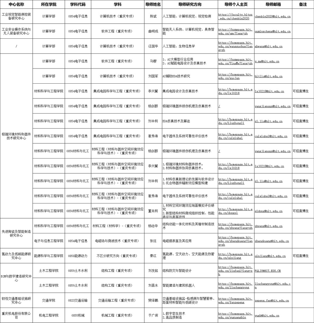 1.直博生:根据学校的统一安排,准备参加产教融合人才培养项目(重庆研究院)2026年推荐免试预选拔的直博生须通过学校 “推免生信息采集系统”(登录哈工大研招办网站:http://yzb.hit.edu.cn),接受可取得推免资格的校内外推免生预报名。考生报名时先选择报考学院、专业,在学科方向中选择含(重庆研究院)的方向。