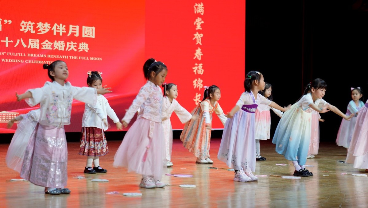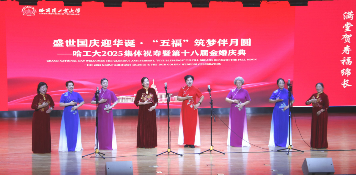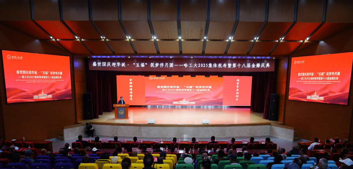 哈工大全媒体(梁英爽/文 葛煜龙 辛然/图)“学校为我们准备生日惊喜,这心里头比蜜还甜。”“学校想得很周到,这是对我们五十年相守、一辈子耕耘的认可,这份情意太暖心了。”9月28日,学校举行2025集体祝寿暨第十八届金婚庆典。校党委常委、组织部部长李明江出席活动并致辞。