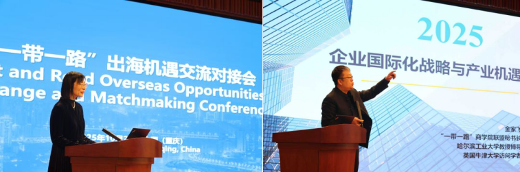 重庆市科学技术局党委副书记许志鹏、哈尔滨工业大学经济与管理学院党委书记张旭为大会致辞。许志鹏指出,重庆正深度融入共建“一带一路”,在技术创新、投资合作等领域持续发力,积极构建全方位、多层次、宽领域的开放新格局,希望企业把握全球机遇,提升国际竞争力。张旭表示,哈工大经管学院与重庆研究院将深化协同,共同服务“一带一路”高质量发展,助力重庆产业出海发展。活动由哈尔滨工业大学重庆研究院副院长阎冰主持。