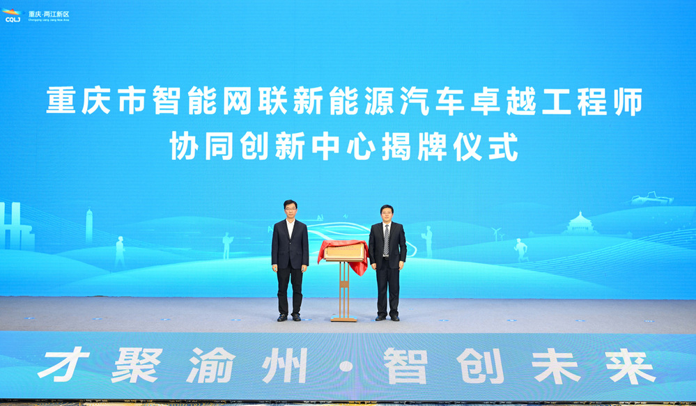 会上,重庆市经信委党组成员王含与研究院执行院长徐培刚共同为“重庆市智能网联新能源汽车卓越工程师协同创新中心”揭牌。该中心将立足全市工业和信息化优势领域,实现工程师集聚、智力资源共享和技术创新要素合理配置,构建人才引领、创新策源、产业升级的生态体系。