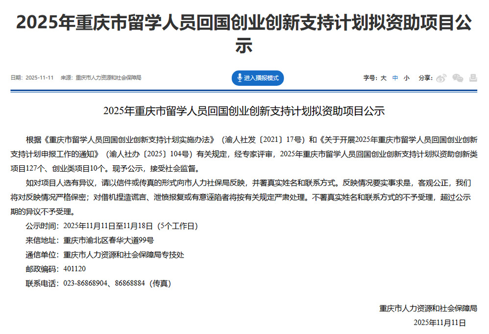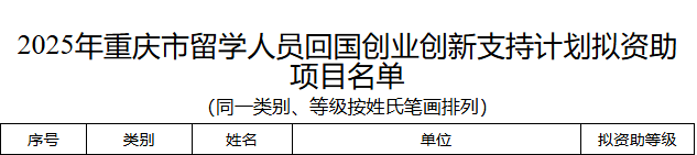 近日,重庆市人力资源和社会保障局对2025年重庆市留学人员回国创业创新支持计划拟资助项目名单予以公示。在入选的10个创业类项目中,研究院孵化企业——集森科技凭借突出表现,成功斩获三等奖。