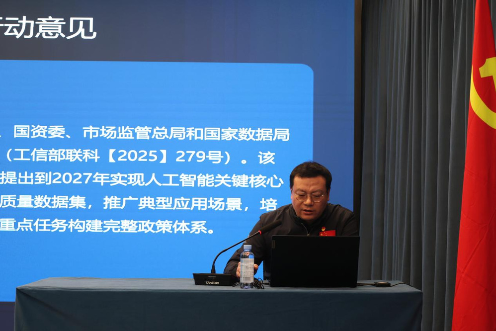 随后,副院长骆佳领学工信部等八部门联合印发的《“人工智能+制造”专项行动实施意见》。会议指出,该政策与研究院主责主业、科研方向高度契合,对抢抓人工智能发展机遇、赋能智能制造等具有重要指导意义。会议要求,全院上下要找准切入点与发力点,切实将学习成果转化为创新动能与发展实效。