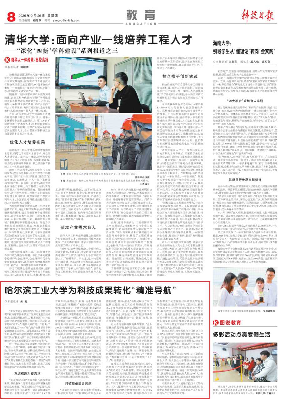 哈工大全媒体(李双余/文)2月26日,《科技日报》推出《哈尔滨工业大学为科技成果转化“精准导航”》,报道我校正式发布面向黑龙江“4567”现代化产业体系的专利全景图谱,以机制创新破解科技成果转化“最后一公里”难题,让更多实验室里的成果变成龙江大地上的产品,为黑龙江产业升级和新质生产力发展提供支撑。