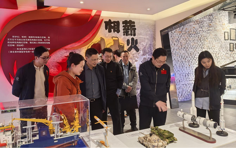 随后,全体人员前往明月坊抗战大后方内迁主题馆开展现场教学。展馆通过珍贵文献、历史实物、场景复原与影音展示,生动再现抗战时期高校、科研机构与工业企业内迁办学、救亡图存的艰辛历程。大家认真聆听讲解,深切感悟先辈坚守教育救国、科技兴邦、工业强国的初心使命,接受红色教育洗礼,汲取奋进力量。