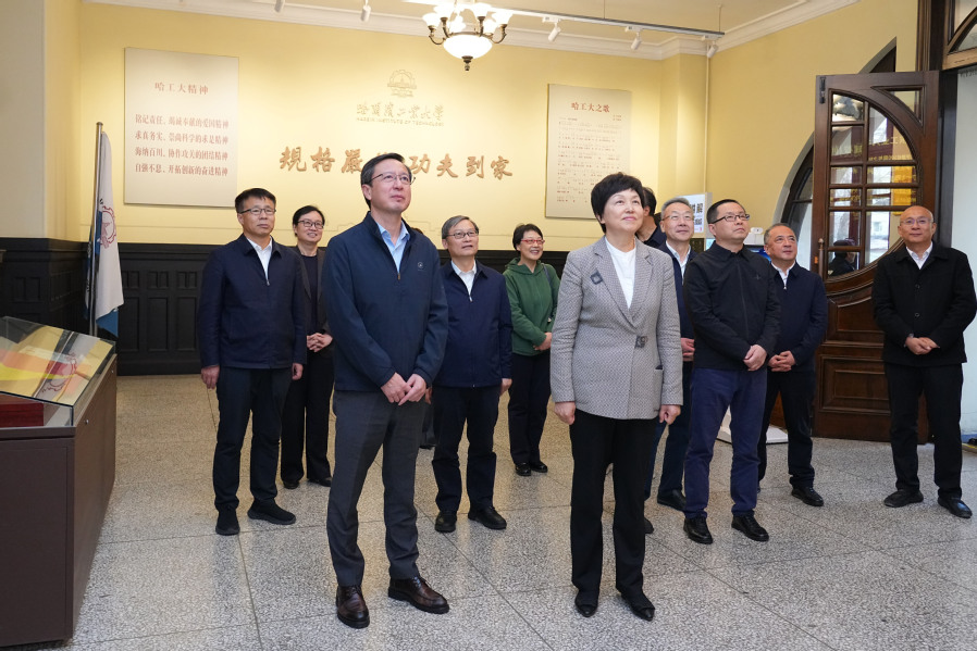 在校期间,陈旭一行调研哈工大博物馆,深入了解我校的办学历史、办学成果以及收到习近平总书记贺信以来的改革发展成就。